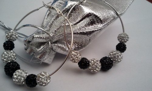 Boucles d'oreilles creole style Shamballa cristal de Swarovski noir et blanc de BIJOUX MYLEEN Acheter neuf : EUR 14,80 (as of 01/16/2013 21:16 PST)