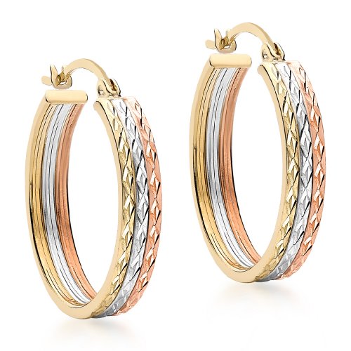 Bijoux boucles d'oreilles Créoles 375 Or tricolor effet diamantée 1.1 g Creolur - RIL1327 3Col - Boucles d'Oreille Femme - Or Tricolore 375/1000 (9 Cts) 1.5 Gr