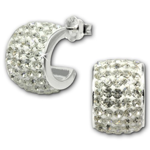 SilberDream scintillement bijoux - Boucle d'oreille créole Beauty en argent 925 avec tchèques argent 925 avec tchèques cristaux Preciosa blanc - GSO009W