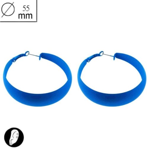 Boucles d'Oreilles Fantaisie Créoles Bleu Fluo - Métal Peint - Diamètre 55mm