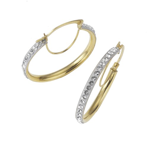 Crystelle - 340310317 - Boucles d'Oreilles Créoles Femme - Or Jaune et Blanc 375/1000 - Cristaux Swarovski Blancs: Amazon.fr: Bijoux