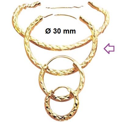 Plaqué Or (Poinçon), Diamètre: 30 mm, Fil de boucle: 2 mm, Garanti sans Nickel