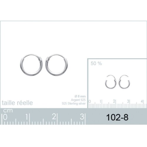 Boucles d'Oreilles Créoles en argent 925/000 Diametre 8 mm