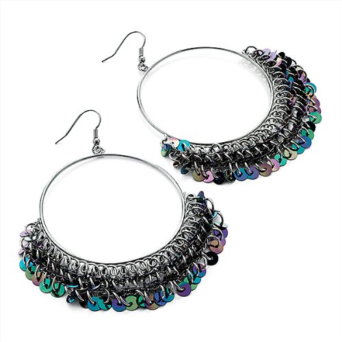 Boucles d'Oreille Grandes Créoles Paillettes Bleu Canard (Ton Noir) Diamètre 5,5 cm plus Détails. Recherches associée: boucles d oreille coeur de lion